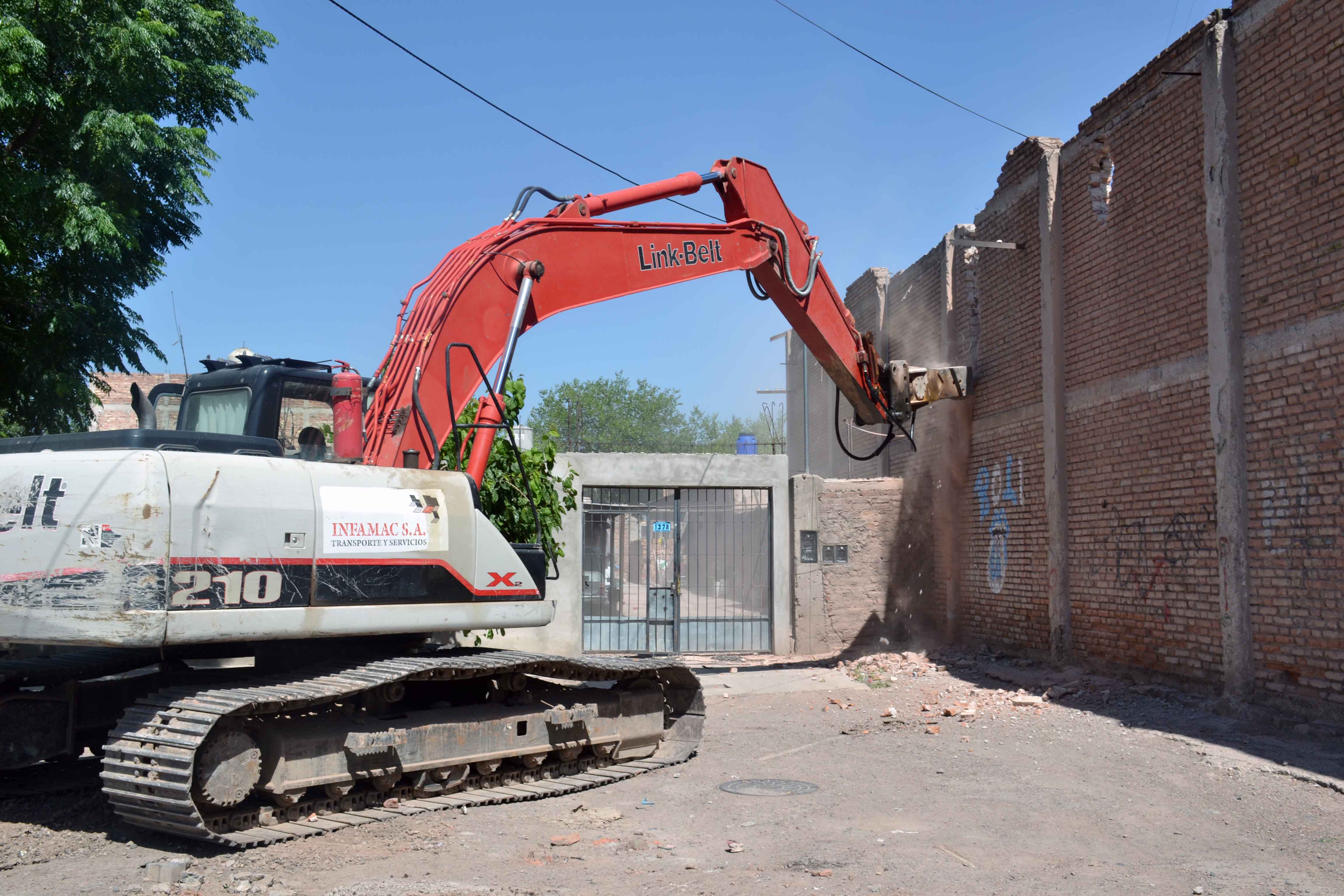 Esta obra contempla la demolición, que ya está en marcha, de la bodega abandonada y sus grandes piletones interiores, que en más de una oportunidad, ha sido escenario de varios hechos violentos. También sirvió de guarida para malvivientes.