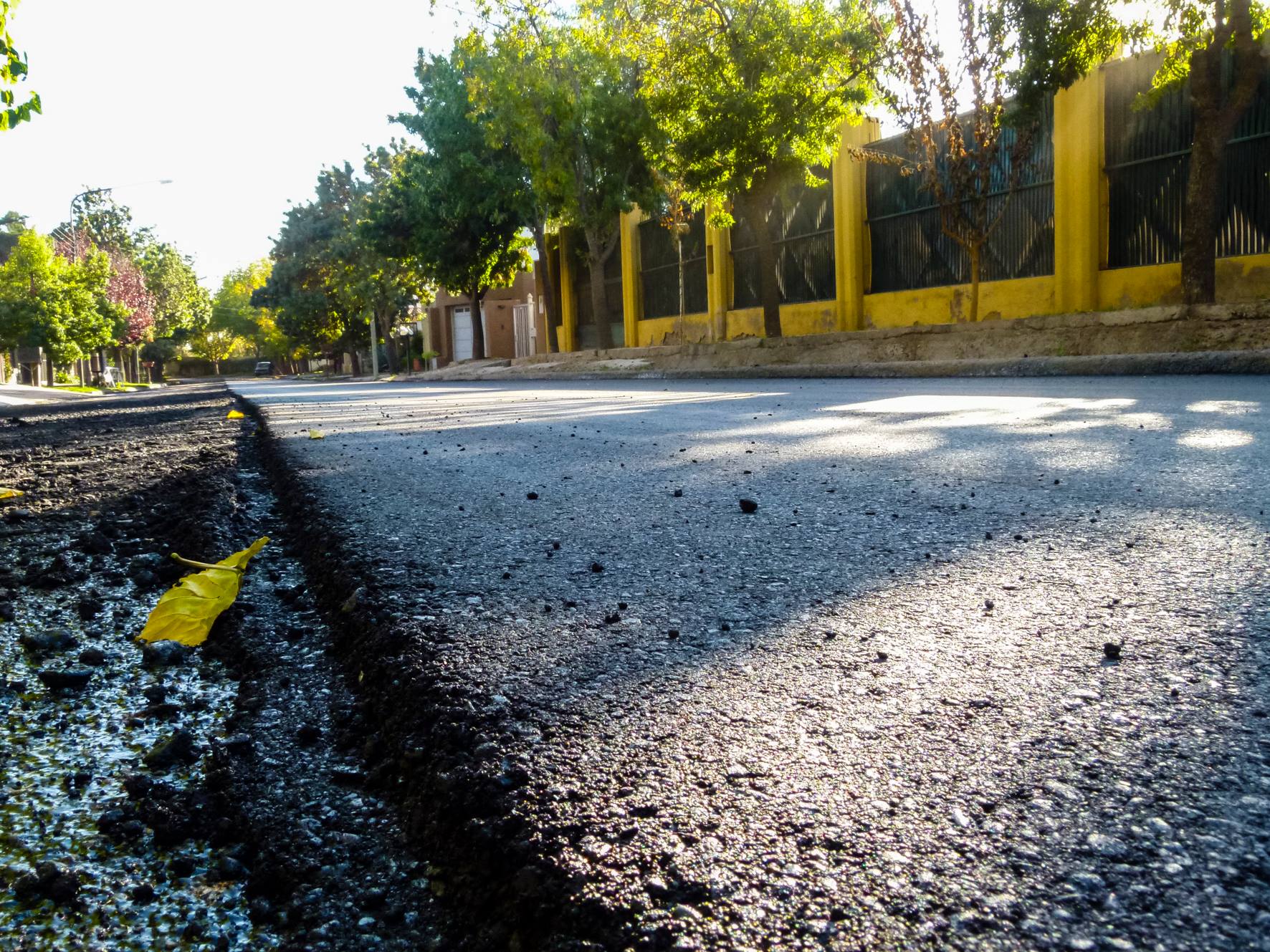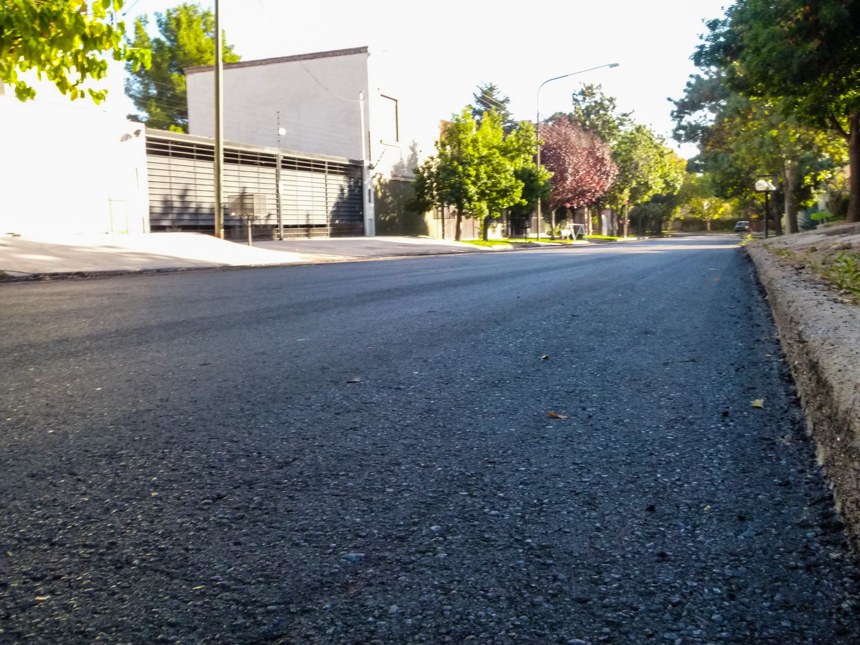 La nueva calzada cuenta con una superficie de concreto asfáltico de 3 centímetros de espesor, que fueron distribuidos tras la limpieza de la calle y la imprimación de material adhesivo.