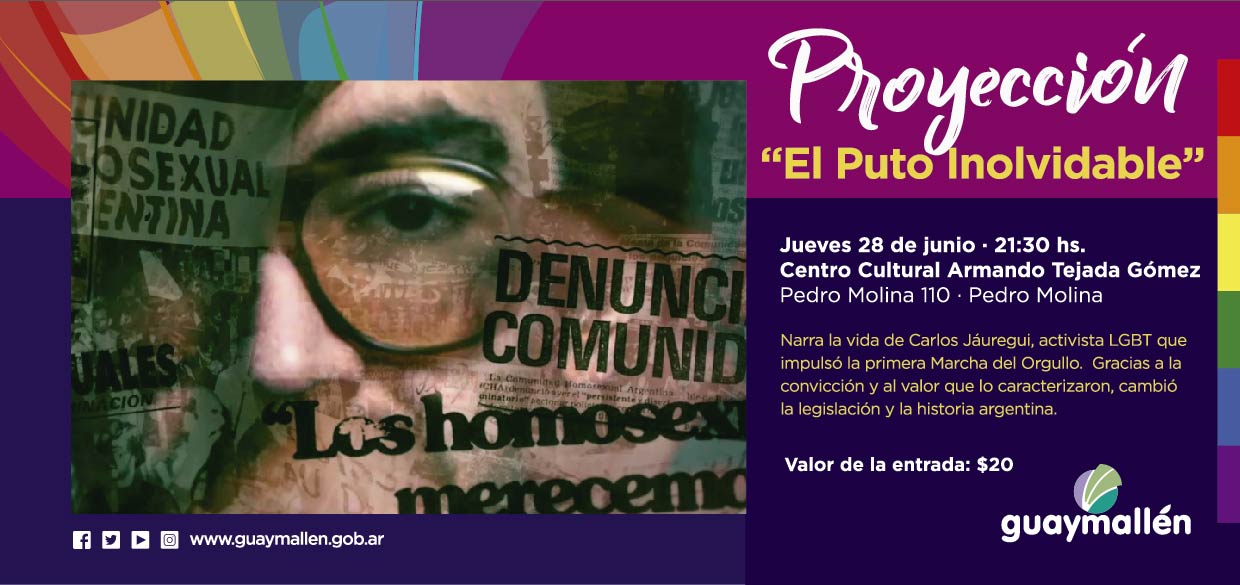 Además, mañana jueves 28, a las 21:30, se proyectará la película “El Puto Inolvidable”, en el Centro Cultural Armando Tejada Gómez y Espacio INCAA de Guaymallén (Pedro Molina 110).