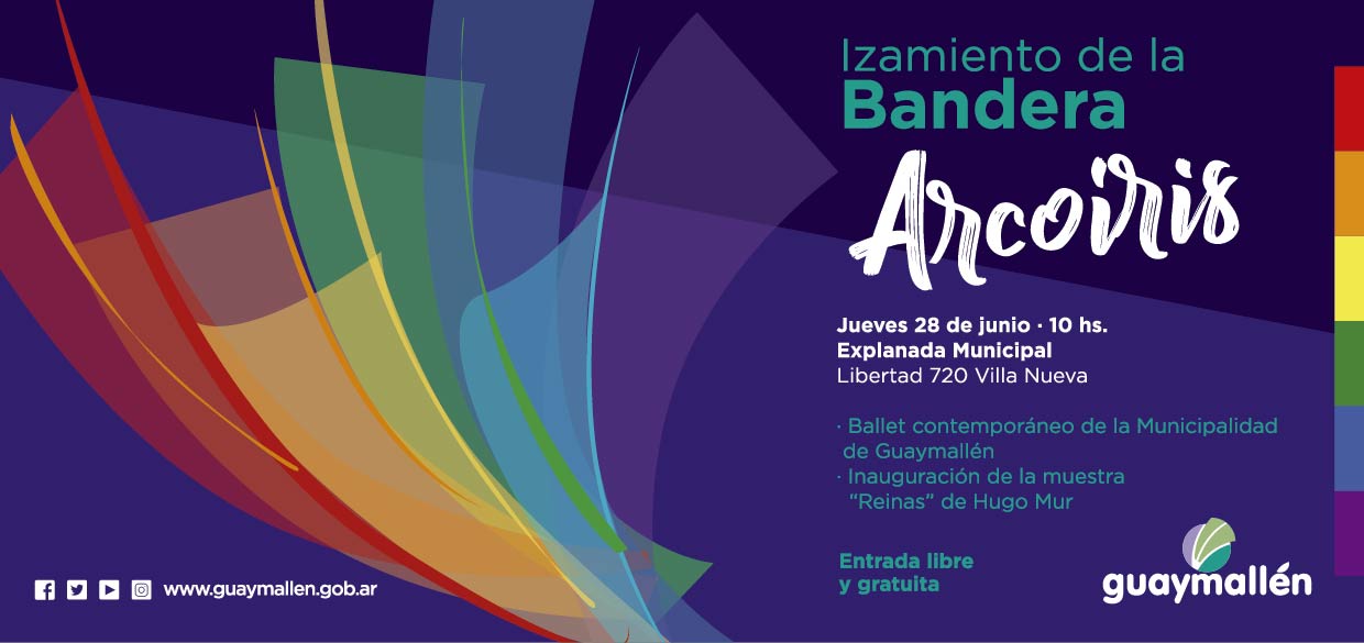 Secretaria de Gobierno Junio 27, 2018Con motivo de celebrarse el “Día Internacional del Orgullo LGBT”, mañana jueves 28 de junio, a las 10, tendrá lugar el izamiento de la bandera Arcoíris, en la explanada de la Municipalidad de Guaymallén (Libertad 720, Villa Nueva).