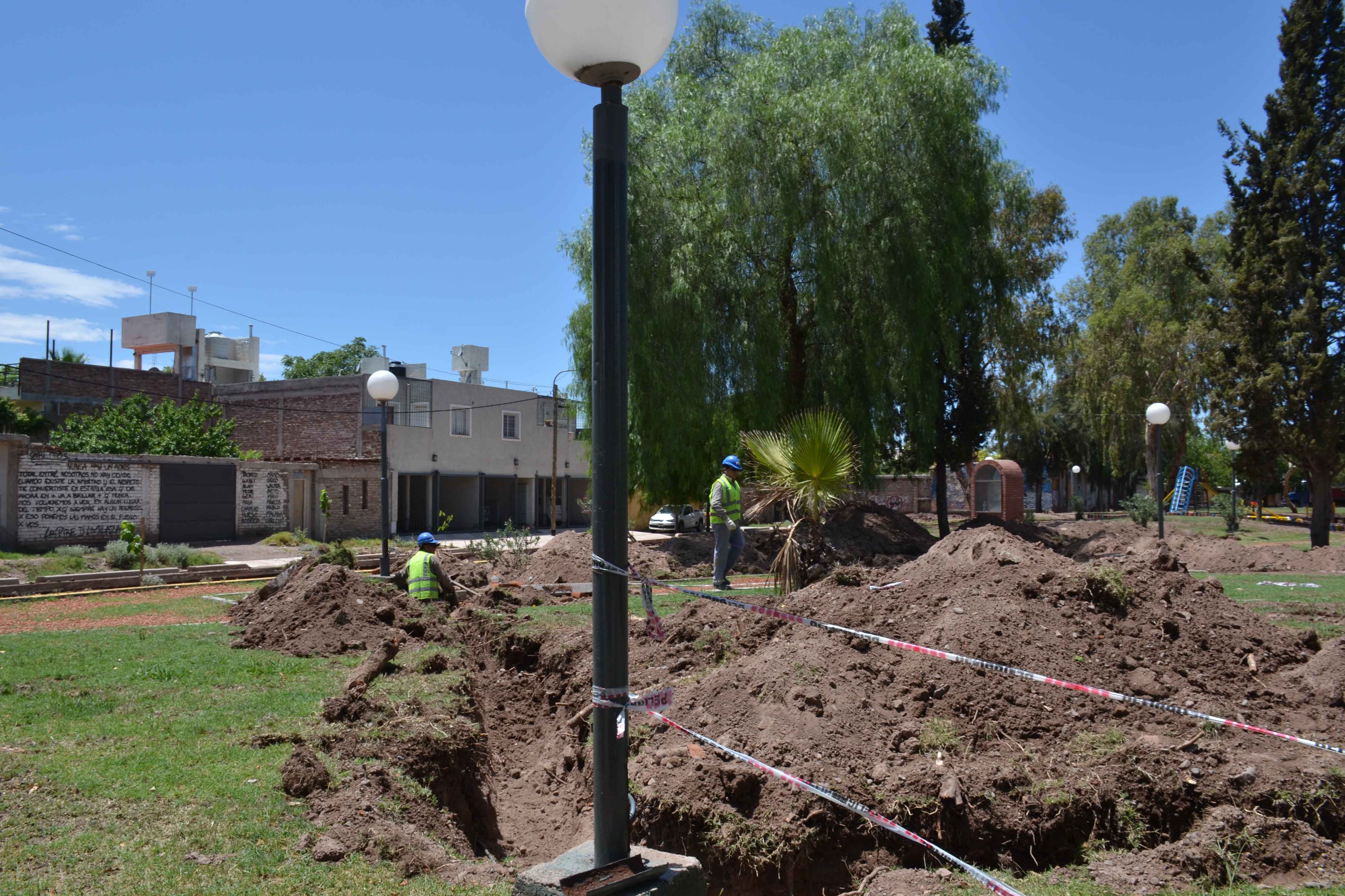 El plan se ejecuta de acuerdo a los diagnósticos que surgen de los sitios relevados. Esa fue la metodología utilizada con la mencionada plaza, donde desde la semana pasada se aborda el zanjeo para los nuevos cables subterráneos, dado que el antiguo se encontraba en muy mal estado.